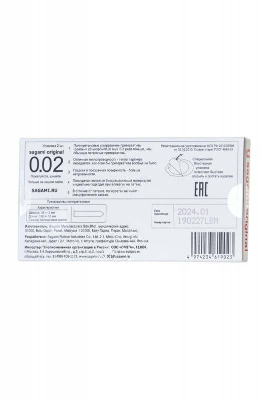 Презервативы полиуретановые "Sagami Original 0,02" 2шт